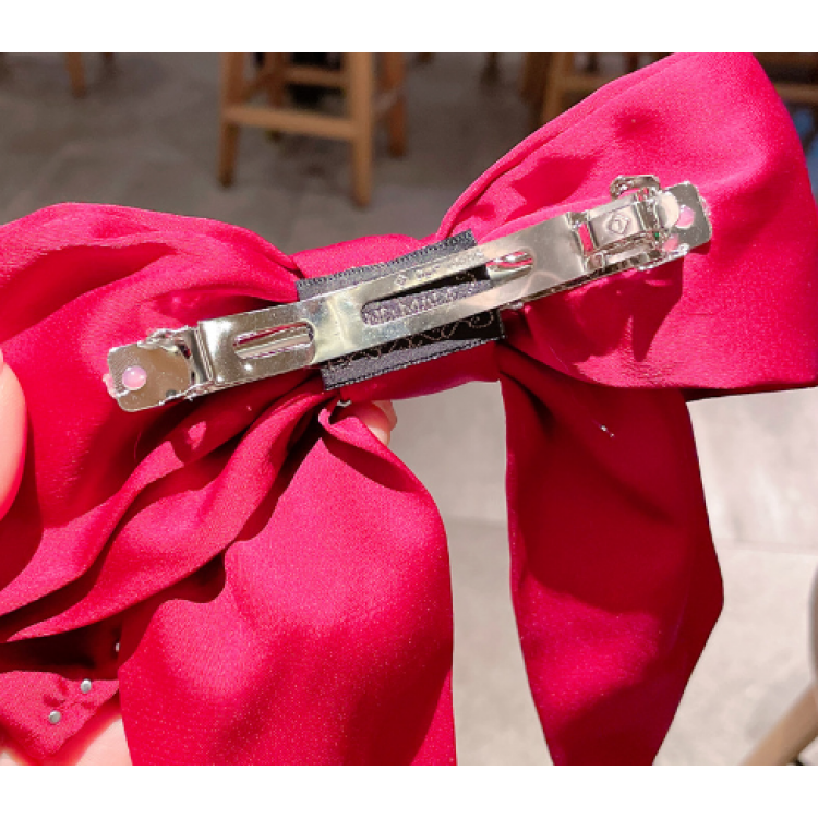Дуже красивий атласний бант, прикрашений перлами.