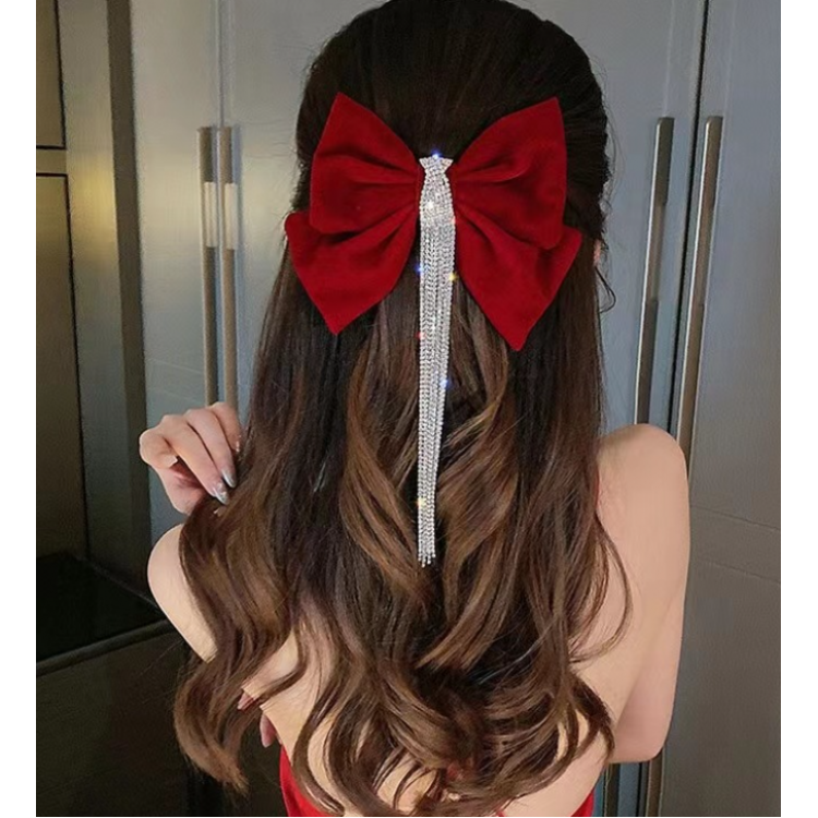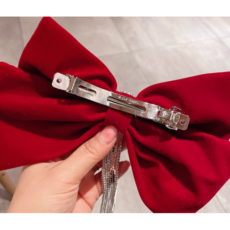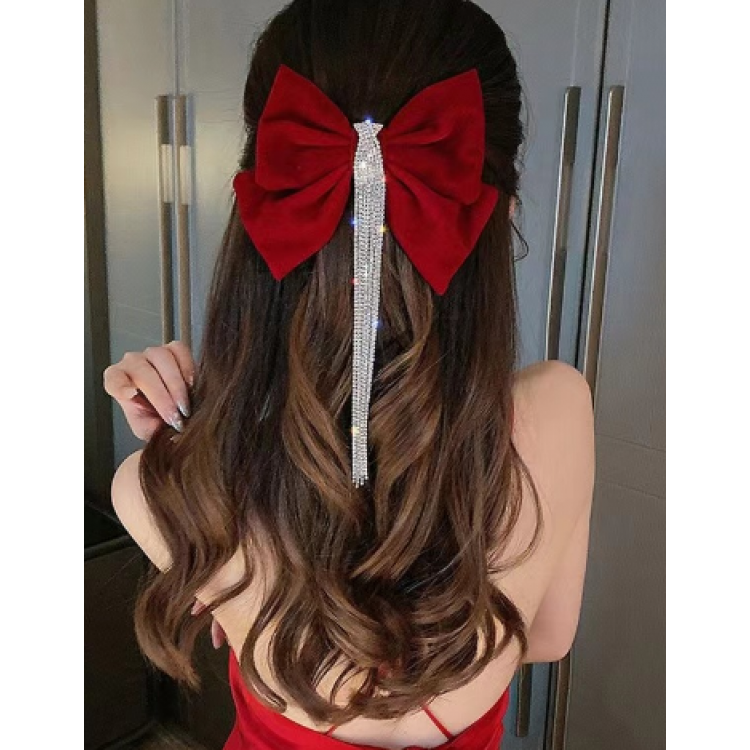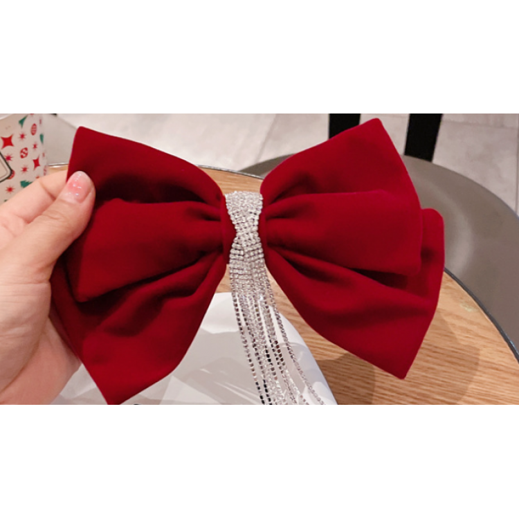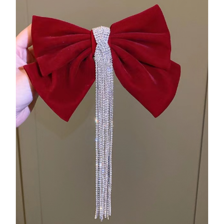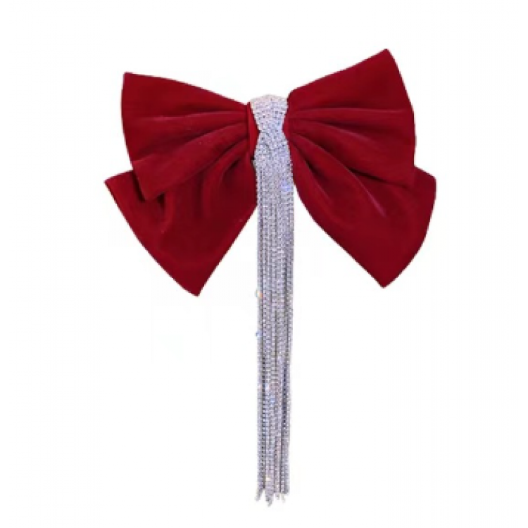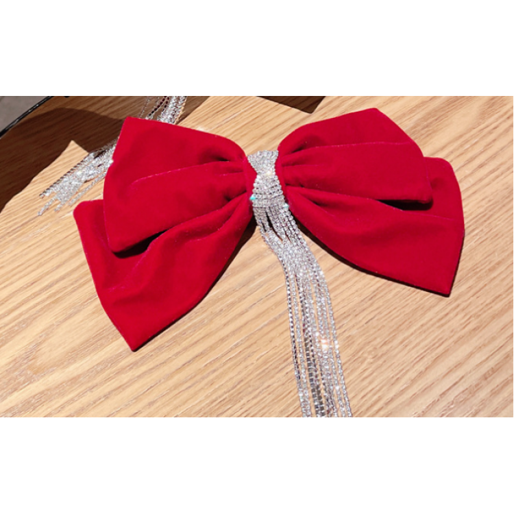 Шпилька - бант для волосся зі стразами, червона, 22х16,5 см