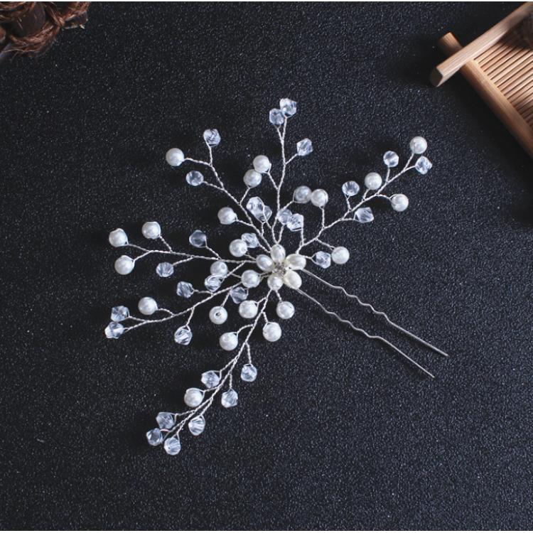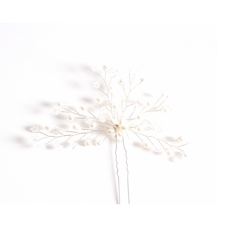 Аксесуар прикрашений штучними білими перлами та прозорими намистинами. Він стане яскравим акцентом у вашій зачісці, незалежно від кольору волосся. Підійде для святкових образів.