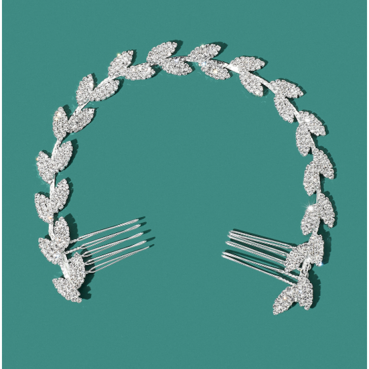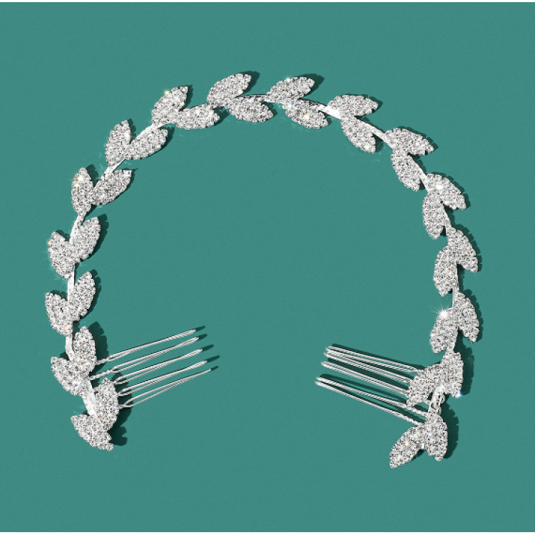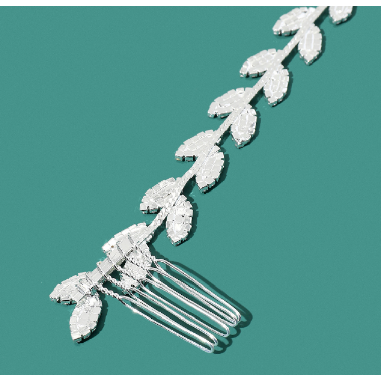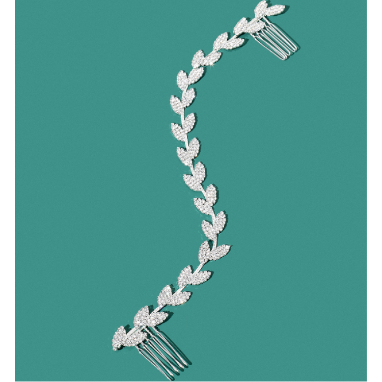 Шпилька - гребінець для волосся зі стразами, срібло, 30 см