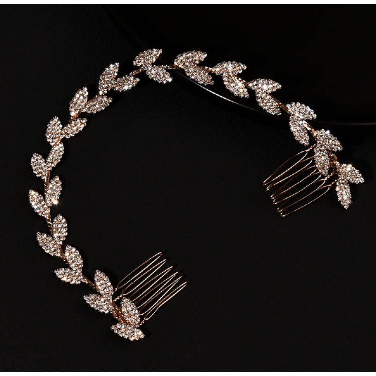 Шпилька - гребінець для волосся зі стразами, золото, 30 см