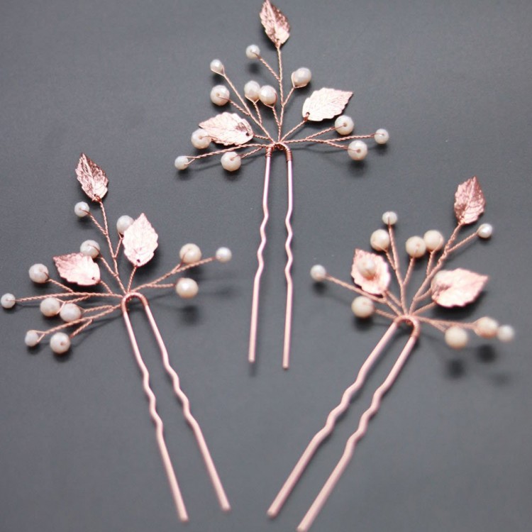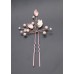 Шпильки для волосся з бісером та стразами "Leaves", рожеве золото, 1 шт