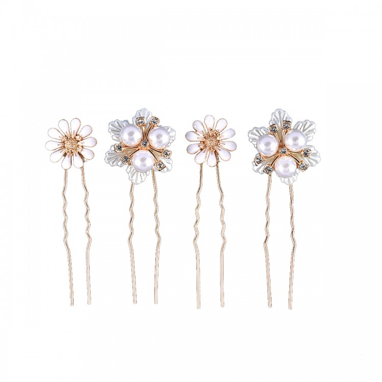 Шпильки для волосся з квітами "Flowers", золото, набір 4 шт