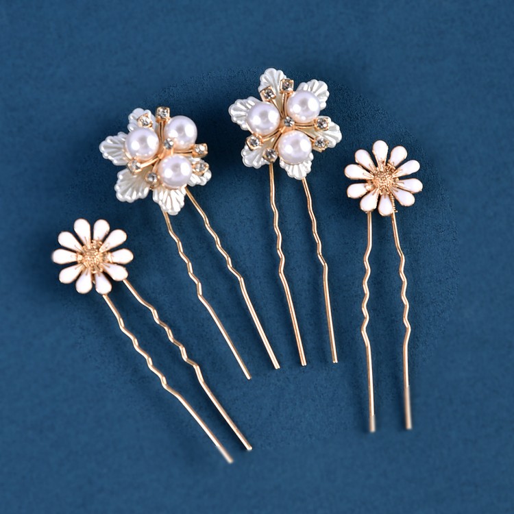 Шпильки для волосся “Flowers” — це елегантний набір із 4 аксесуарів різного формату, що додають зачісці неповторної витонченості та шарму. У комплекті 2 шпильки у формі тендітних ромашок та 2 шпильки з декоративними квітами і перлинами, які підкреслюють святковість і ніжність образу.