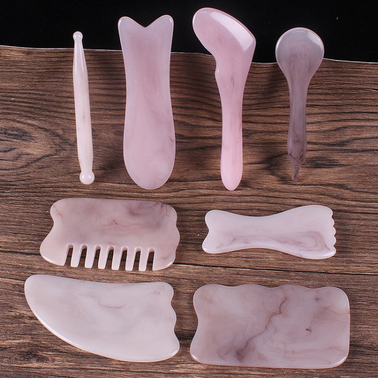 Гуаш красиво виглядає, приємний на дотик і відчутно охолоджує шкіру під час масажу. Виконувати масаж обличчя такими аксесуаром потрібно по масажних лініях, обов'язково рухаючись від низу до верху, щоб активувати кровотік, посилити мікроциркуляцію, зняти м'язову напругу і тонізувати.