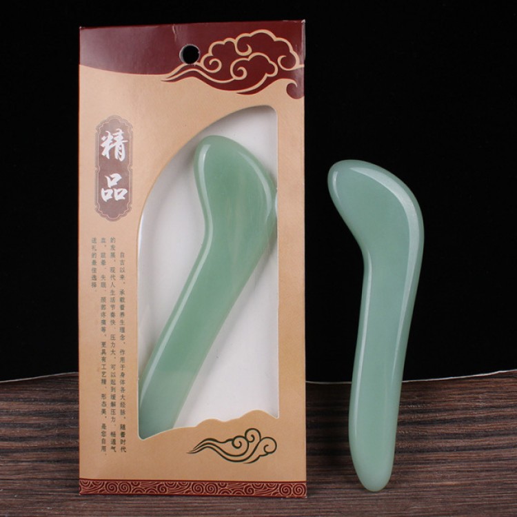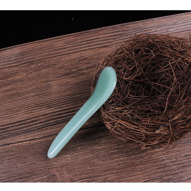 Шкребок ГуаШа Ложечка, зелене скло, 2х11,5 см