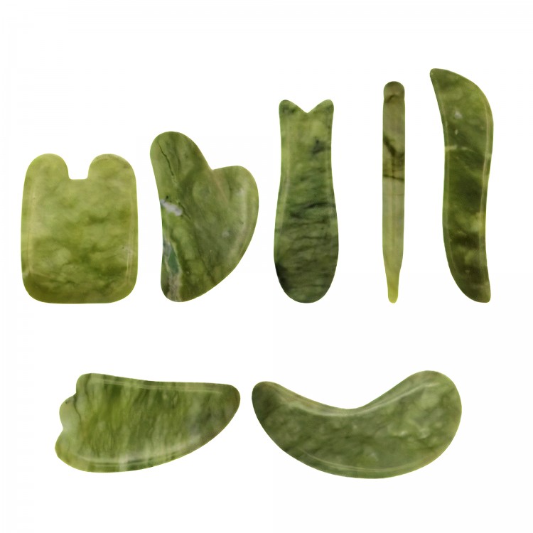 Шкребок Гуаша, S-подібний/М'яка Ложечка, зелений нефрит, 2х10 см