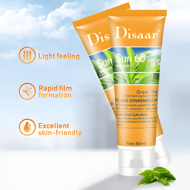 Сонцезахисний крем Disaar Moisturizing Sunblock SPF 60 PA+++ Sunscreen, з екстрактом зеленого чаю, 80 мл