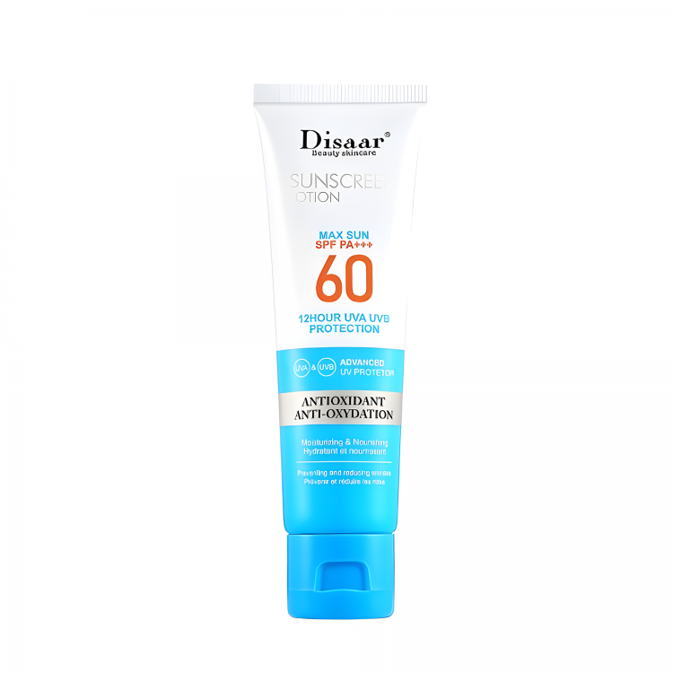Щоб запобігти цьому, пропонуємо Вашій увазі наш відбілюючий сонцезахисний крем Disaar Sunscreen Lotion SPF PA+++ 60 із захистом від УФ-променів! Засіб із високим рівнем захисту — 60 — варто брати у разі тривалого перебування на сонці або ж тим, хто має світлу шкіру, чутливу до опіків.