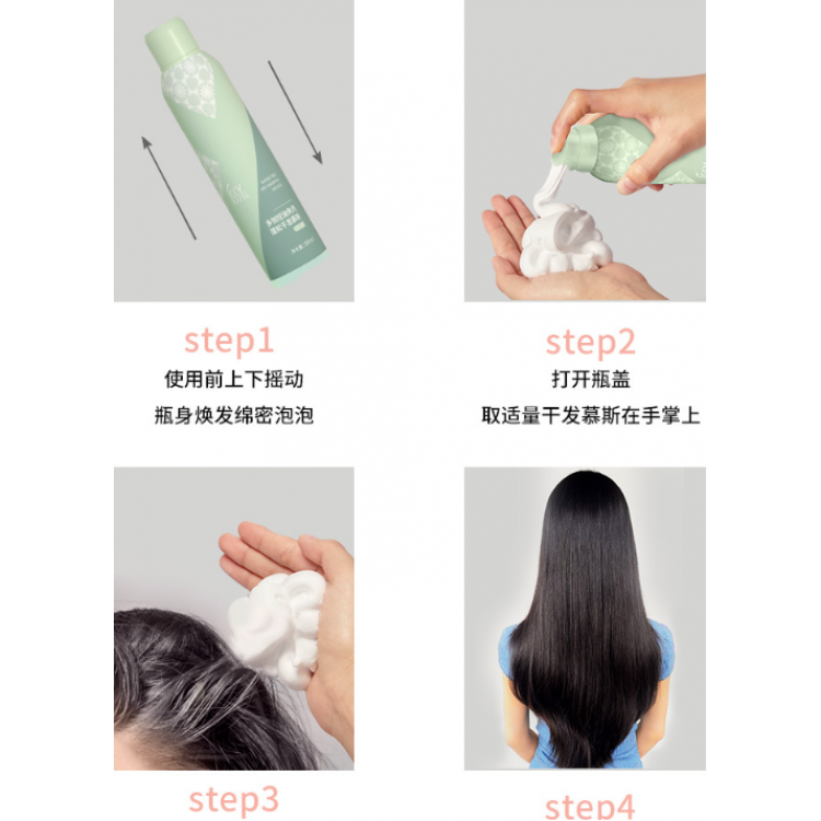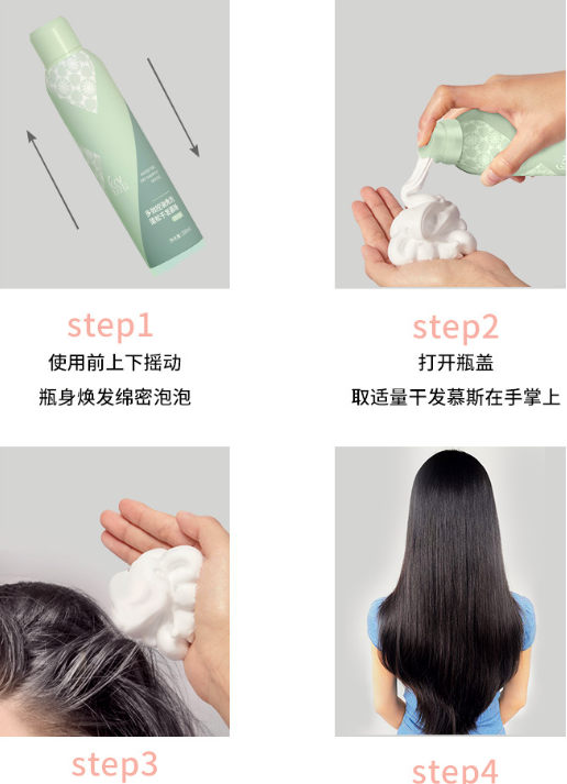 Сухий шампунь-мус – це ідеальне рішення для тих, хто прагне підтримувати волосся в ідеальному стані. Завдяки своїй унікальній формулі, ця пінка миттєво освіжає зачіску, забезпечуючи чистоту та об'єм волосся без необхідності використання води. Продукт легко розподіляється по шкірі голови, абсорбує надлишки шкірного сала та не залишає білі сліди, що робить його ідеальним для всіх відтінків волосся. Як варіант, дайте шампуню-пінці висохнути на повітрі або нанесіть його на волосся напередодні ввечері.