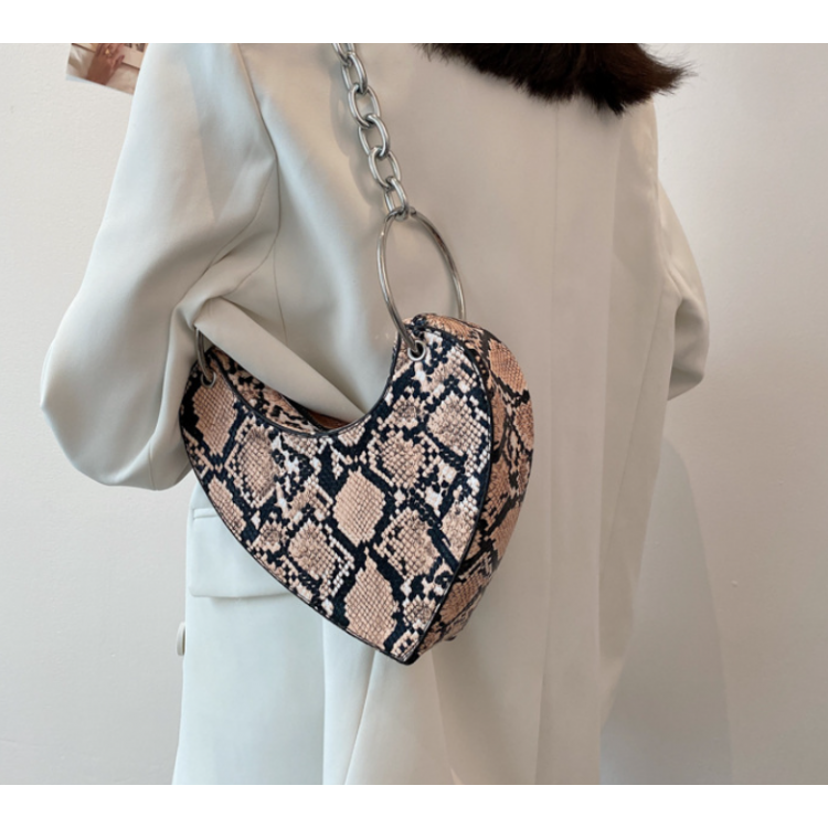 Сумка у формі серця зі зміїним принтом, 22х22х6 см