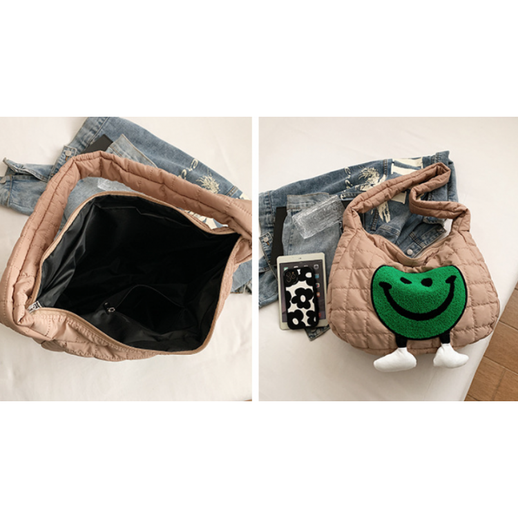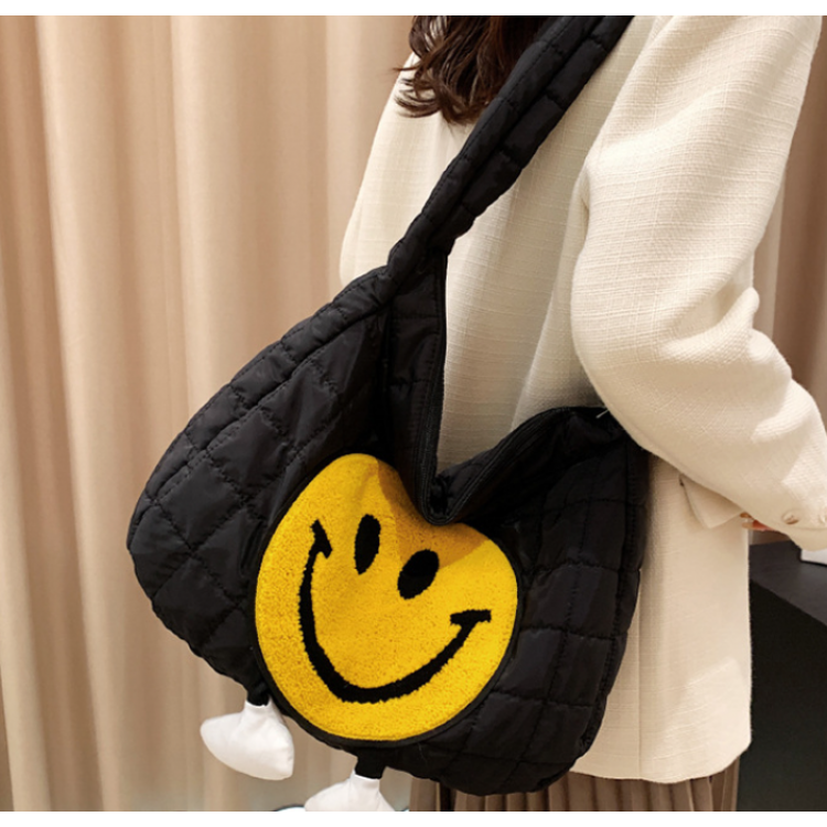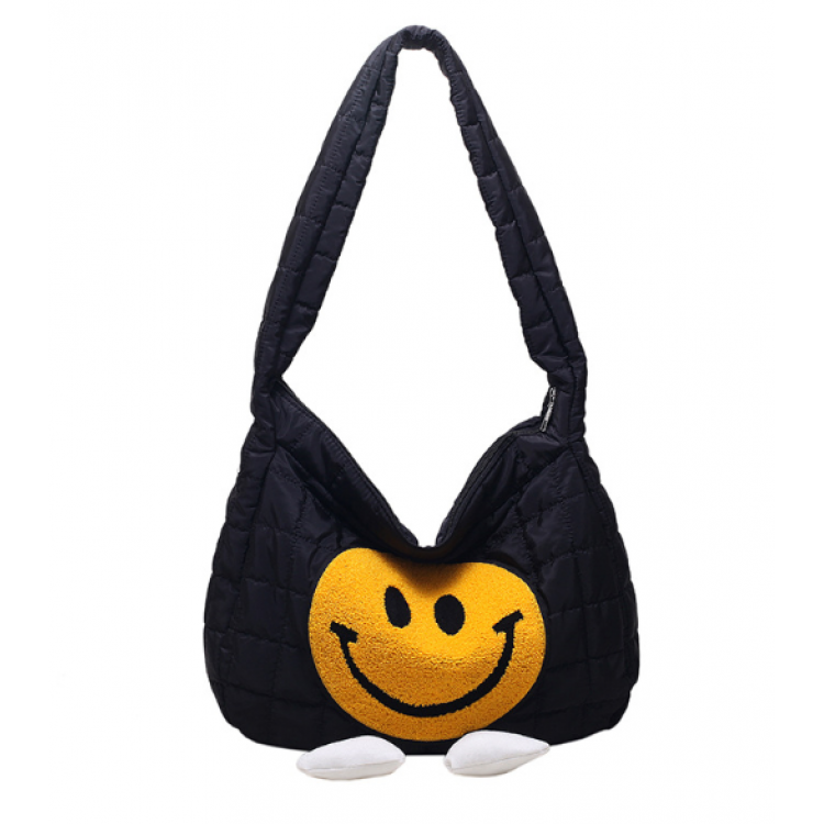 Нейлонова сумка поєднує в собі практичність і комфорт, а яскравий принт у вигляді смайлика додасть вам стилю. Виготовлена з нейлонової тканини, зовні закривається на блискавку, всередині є додаткова кишенька на застібці.