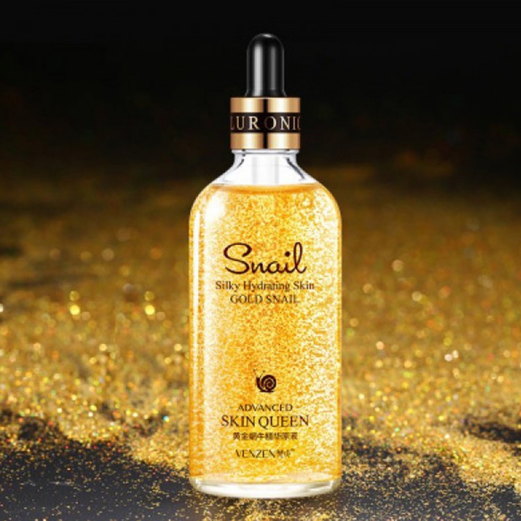 Неповторна омолоджуюча сироватка від VENZEN, з муцином равлики і золотими частинками, подарує вашій шкірі глибоке живлення, зволоження і м'якість шовку. Муцин равлики, ключовий компонент, насичує дерму амінокислоти, усуває сліди втоми і наслідки оксидативного стресу шкіри; нейтралізує шлаки і токсини, нормалізує роботу сальних залоз; надає заспокійливу і загоює.