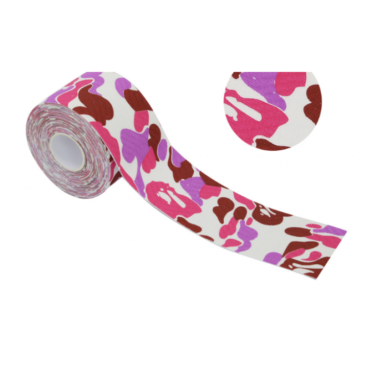 Тейп кінезіо 5 см, Фіолетово - рожевий камуфляж, кінезіологічна стрічка Kinesiology Tape, 5 см