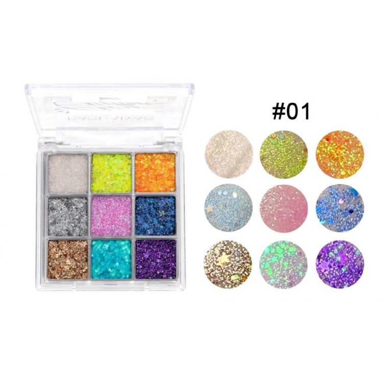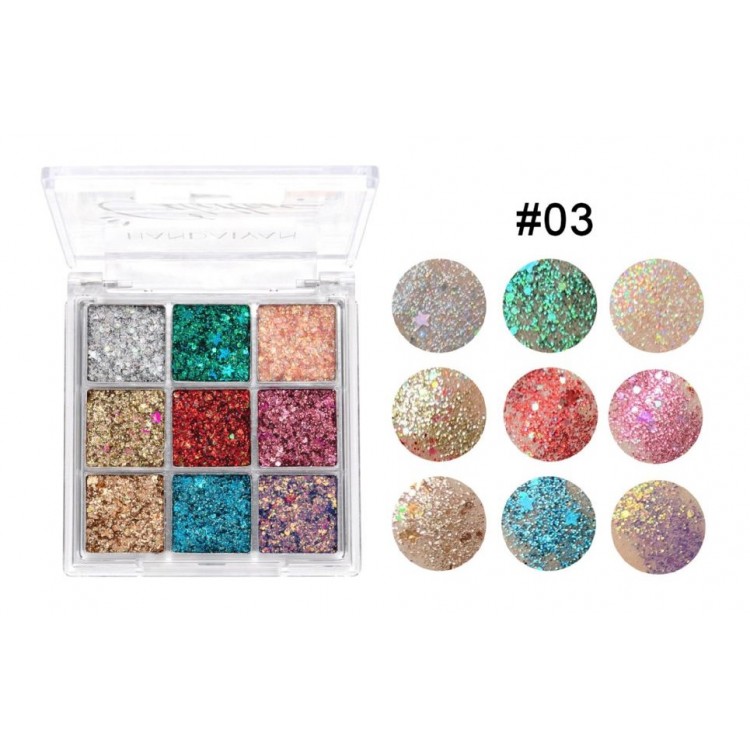 Тіні кольорові для повік, з блискітками Handaiyan Glitter Eyeshadow, палетка тіней з блискітками, глітер, 3 види