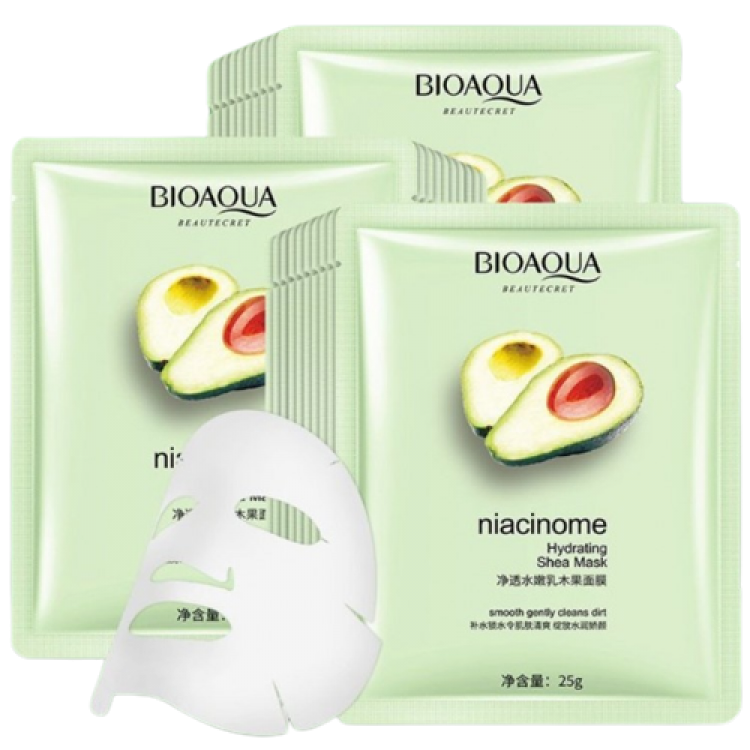 Тканинна маска для обличчя Bioaqua Niacinome Hydrating Shea Mask, з авокадо та маслом ши