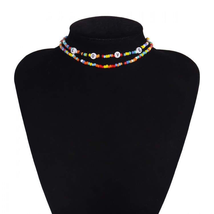 Чокер з різнокольорового бісеру та літерами "LOVE", набір 2 чокери