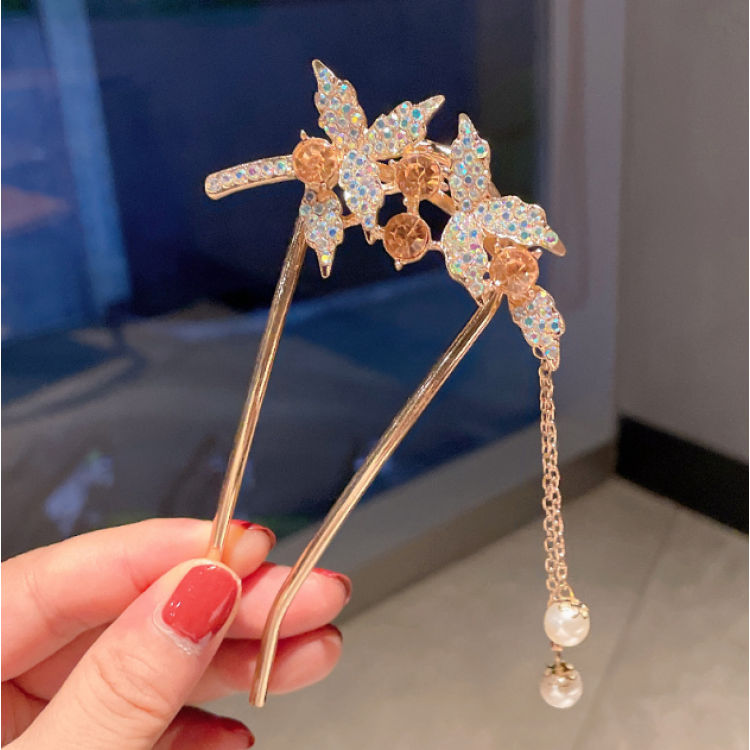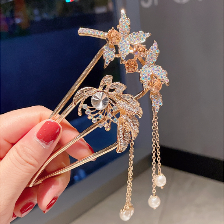 Шпилька для волосся "Небесні квітки", U-подібна, проста металева шпилька в стилі ретро з перлами