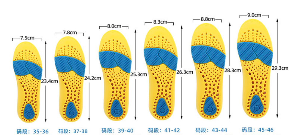 Устілки спортивні для взуття, амортизаційні устілки для бігу, 6 розмірів