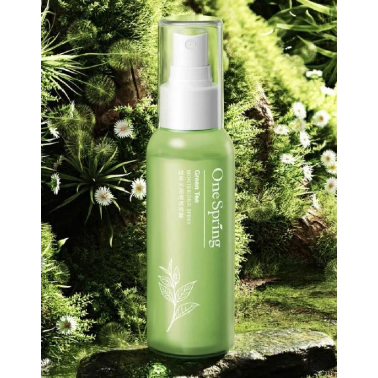 Для підтримки водного балансу шкіри фірма One Spring пропонує зволожуючий спрей із екстрактом зеленого чаю. Косметичний засіб перешкоджає сухості, зневодненню та знімає відчуття стягнутості. Інтенсивно зволожує шкіру, тонізує та освіжає протягом дня.