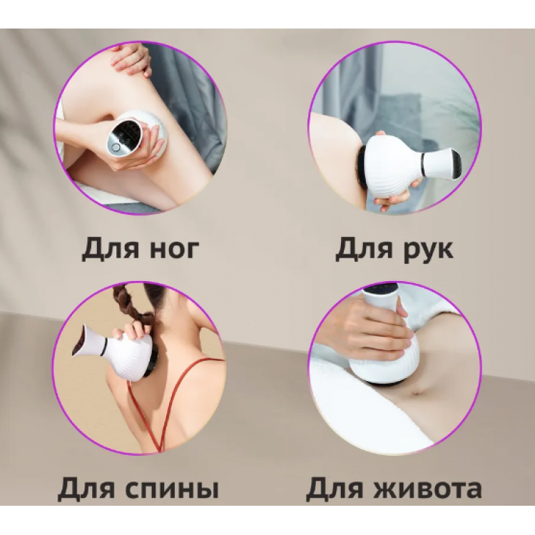 Антицелюлітний масажер допоможе у створенні красивих контурів тіла та здорової пружної шкіри. Завдяки 9 режимам інтенсивності масажер легко налаштувати під будь-який поріг чутливості шкіри. Вакуумний масажер для тіла має три режими роботи: