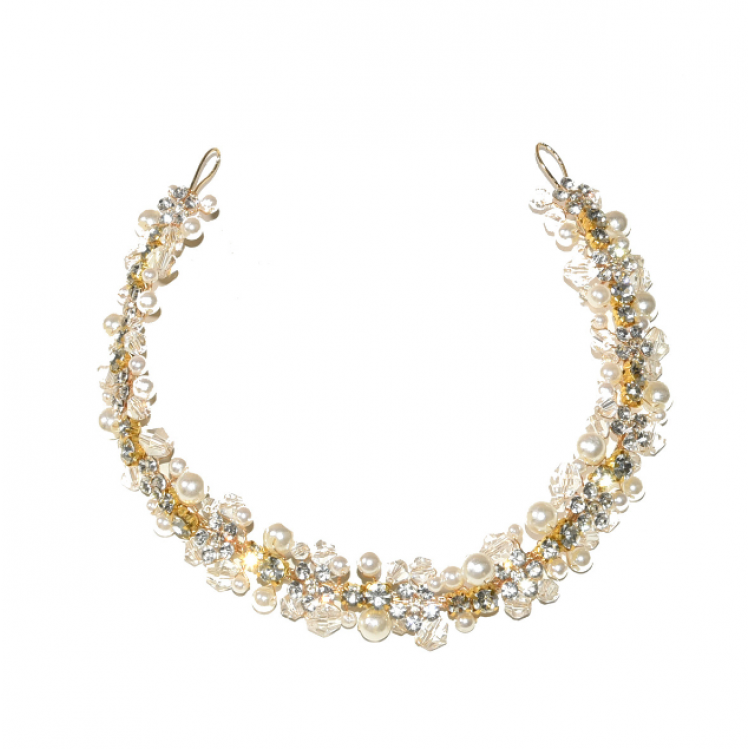 Віночок для волосся «Pearl» з перлами, стразами та кришталевими намистинами – це чудовий, ніжний та романтичний аксесуар. Він вдало прикрасить будь-яку зачіску, стане гарним доповненням як весільний аксесуар нареченої та додасть елегантності святковому образу у важливі моменти життя.