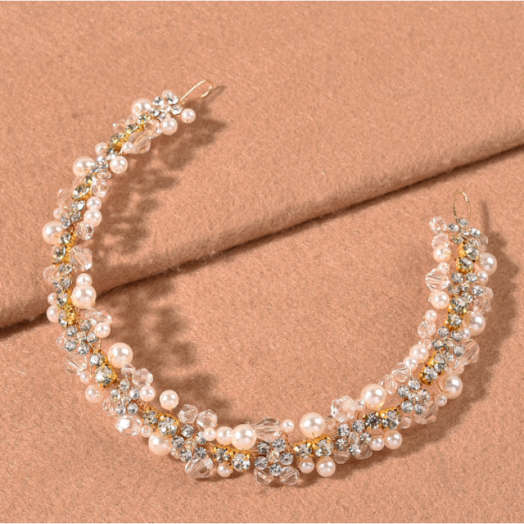 Віночок для волосся з перлами «Pearl», аксесуар для зачісок, золото