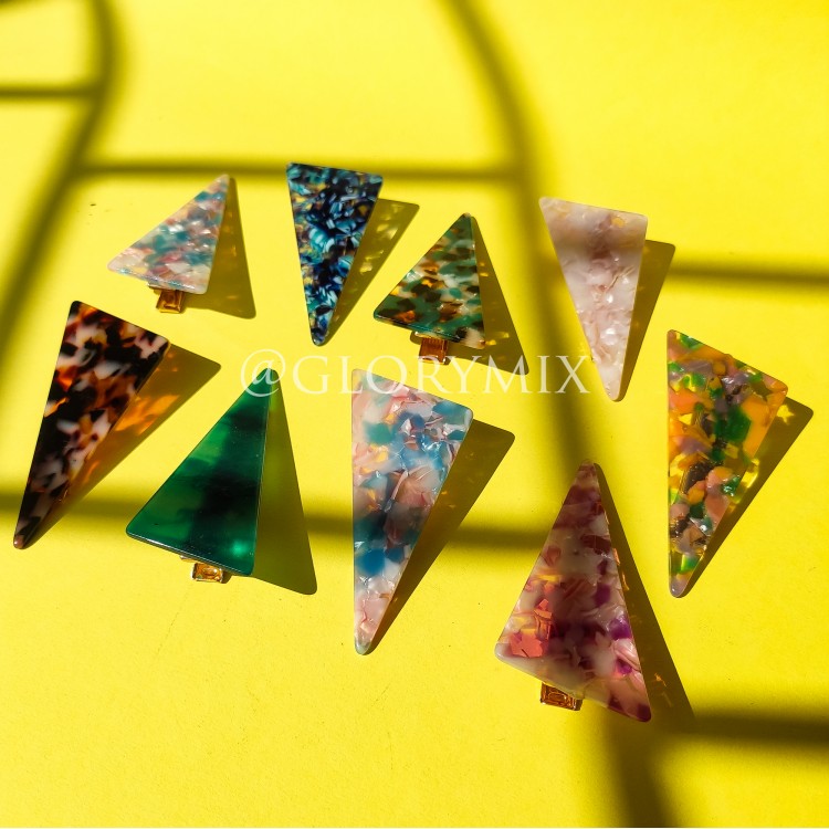 Лаконічні шпильки в стилі мінімалізм, трикутної форми, в різних кольорах. Яскраві і незвичайні кольори, добре тримають волосся.