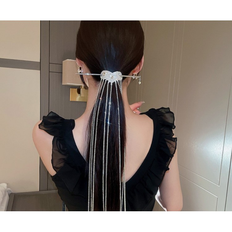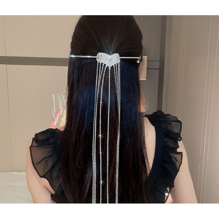 Шпилька із довгими смужками зі стразами - справжня знахідка для любителів оригінальних прикрас. Вона легко кріпиться до волосся завдяки затиску, не обтяжує хвіст, тримається міцно і надійно.