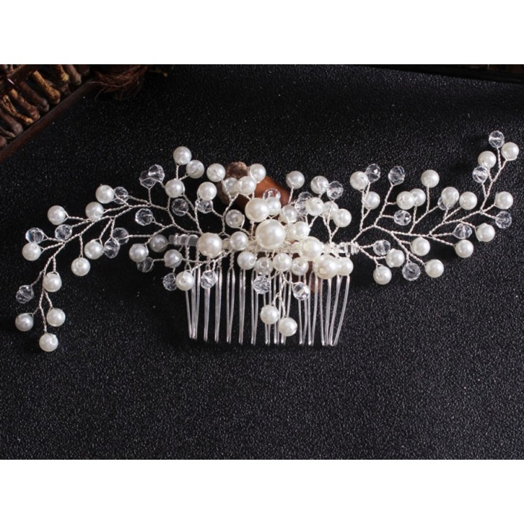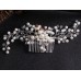 Шпилька - гребінець для волосся, з перлами та кристалами, срібло, 6,5х22 см
