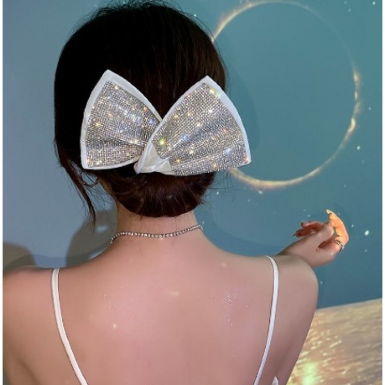 Шпилька-твістер біла, зі стразами, 1шт