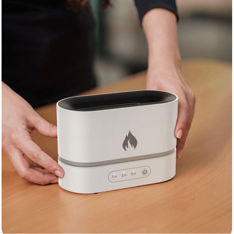 Зволожувач ароматизатор повітря "Flame Mist Aroma Diffuser" з ефектом полум'я, білий